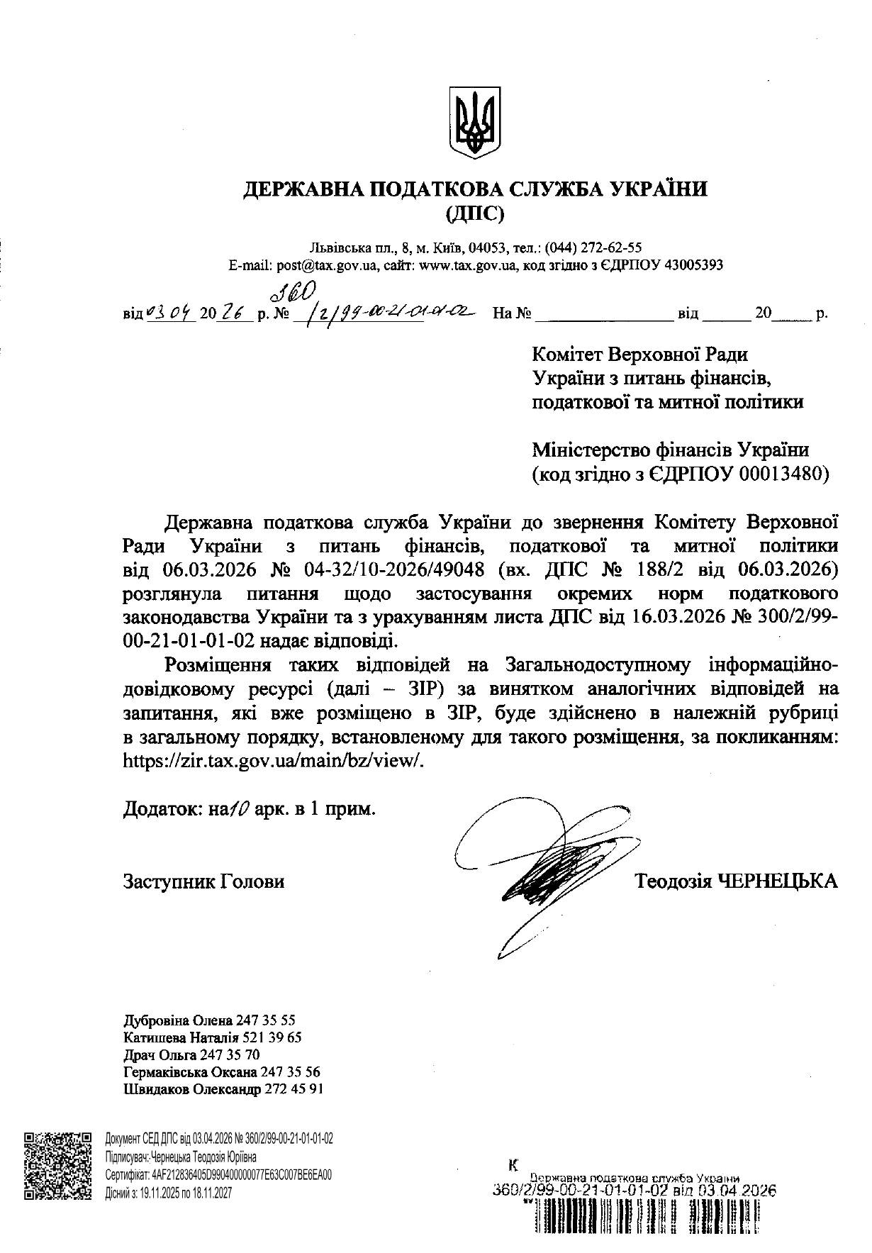 На запрос Комитета ВР по вопросам финансов, налоговой и таможенной политики ГНС в письме от 03.04.2026 № 360/2/99-00-21-01-01-02 предоставила ответы относительно применения отдельных норм налогового законодательства Украины.