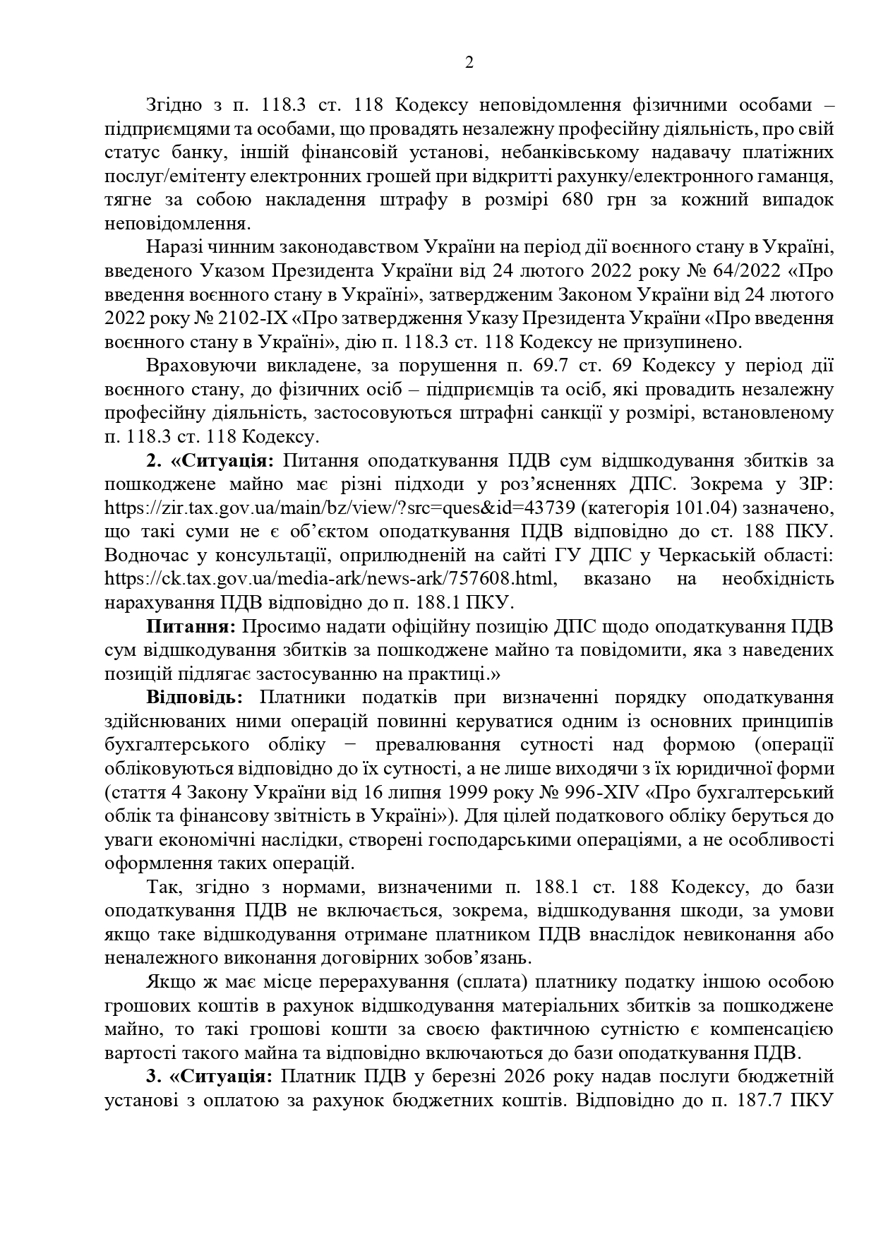 ГНС отвечает на актуальные вопросы налогоплательщиков: письмо от 06.03.2026