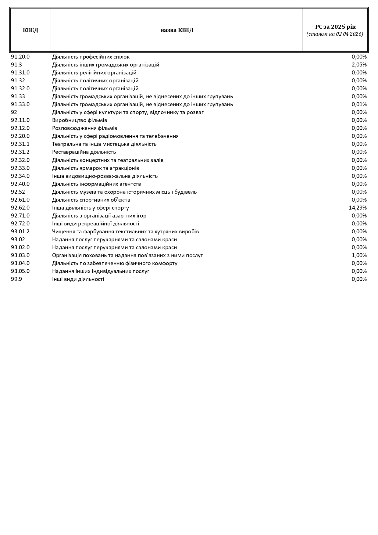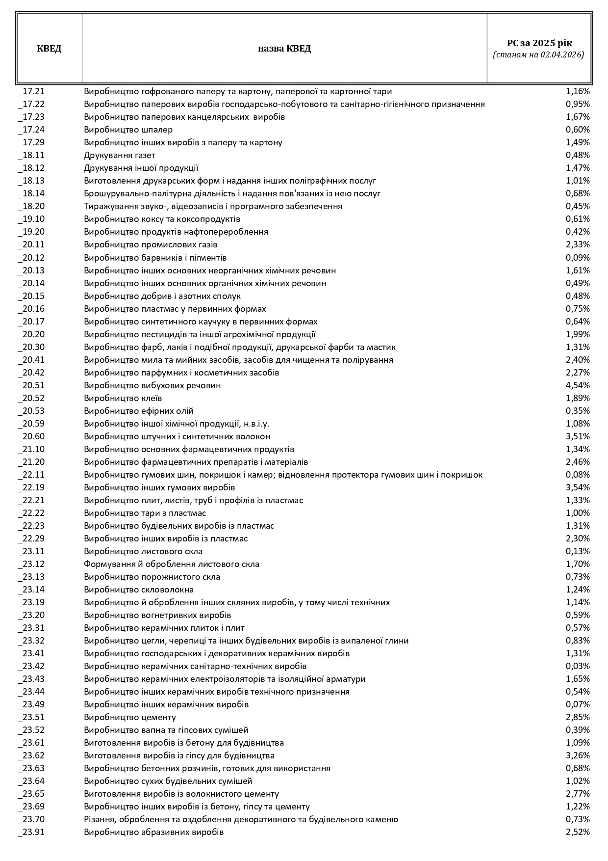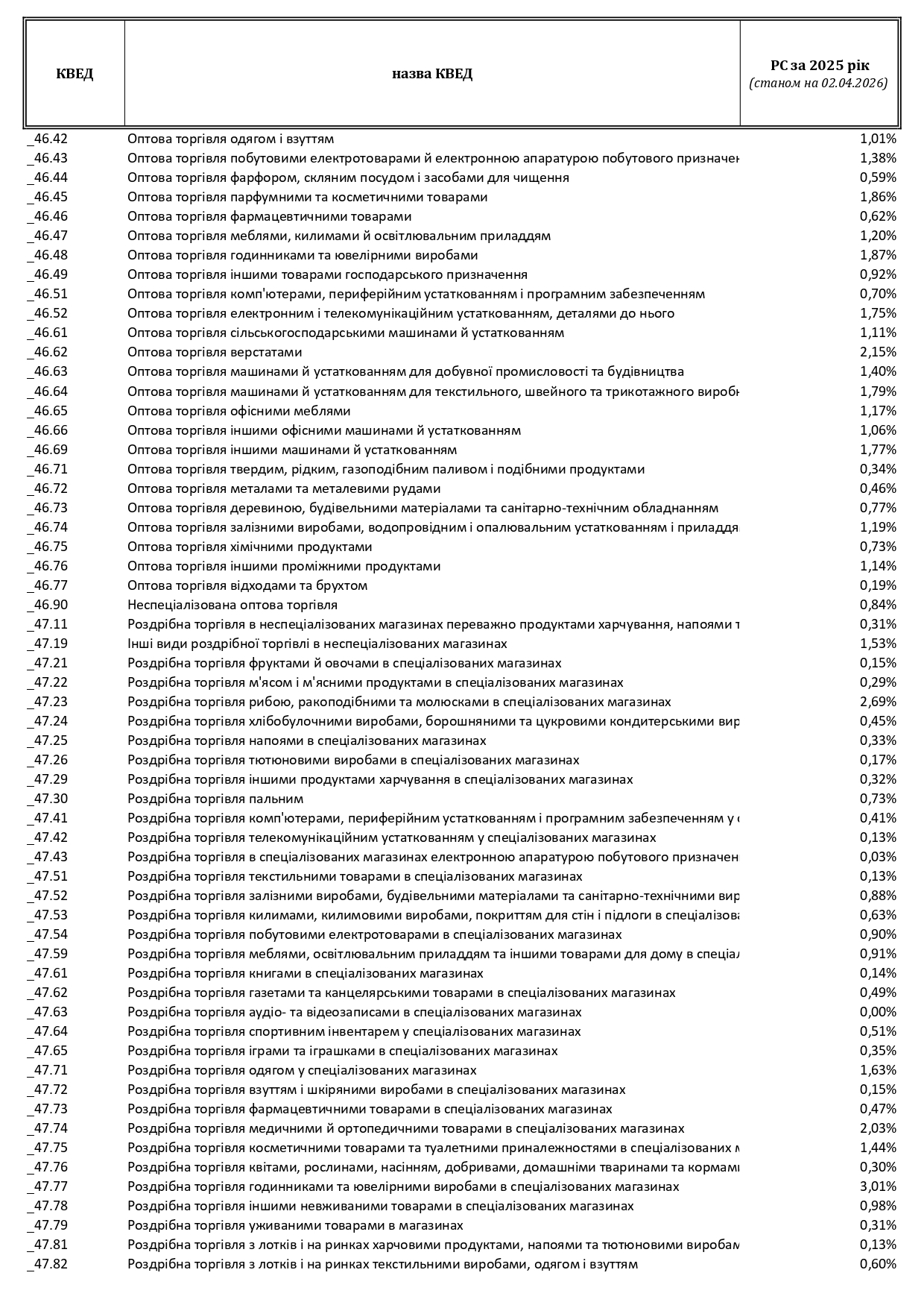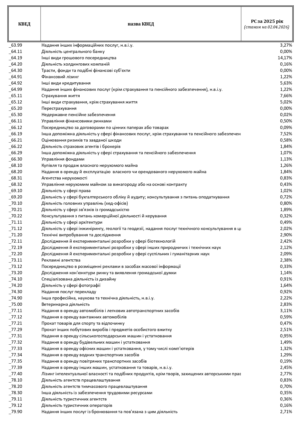 ГНС обнародовала показатели налоговой эффективности (уровень уплаты) по налогу на прибыль предприятий по данным налоговой отчетности за 2025 год, по состоянию на 02.04.2026, сформированной по видам экономической деятельности на уровне класса согласно классификации видов экономической деятельности ДК 009:2010.