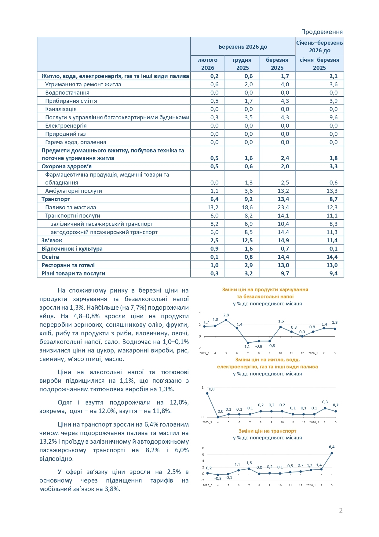Інфляція на споживчому ринку в березні 2026 року порівняно із лютим становила 1,7 %, із березнем 2025 року – 7,9 %.