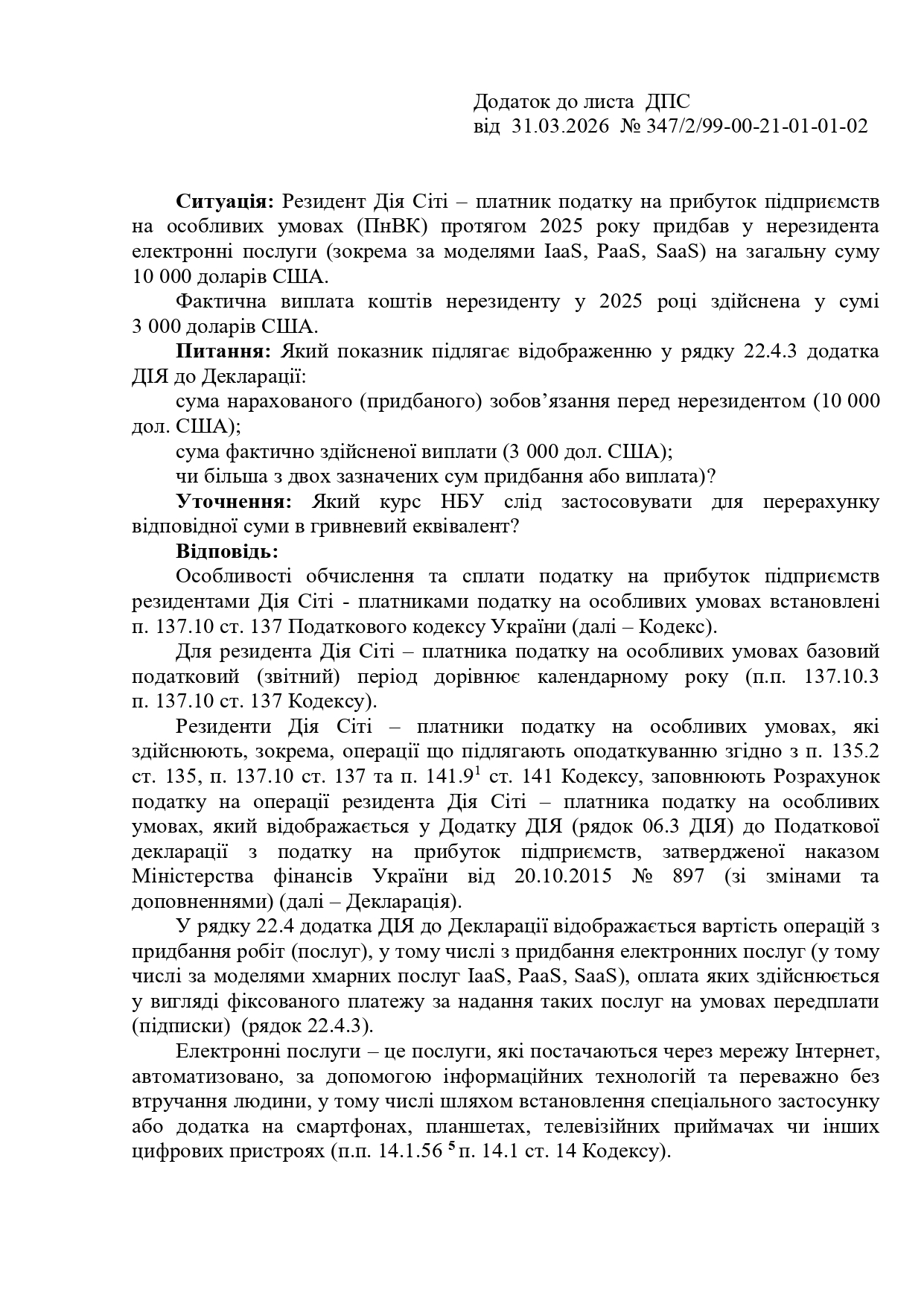 ДПС відповідає на актуальні запитання платників податків: лист від 24.03.2026