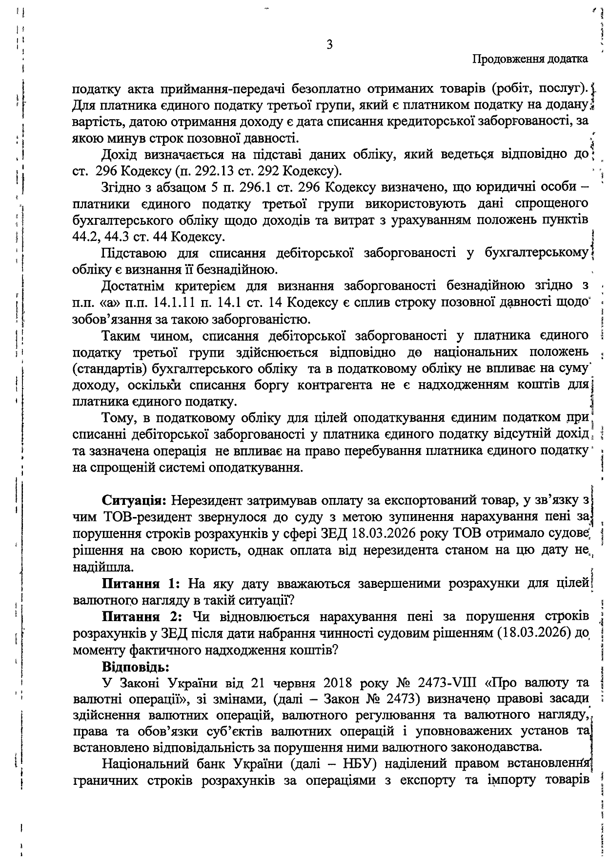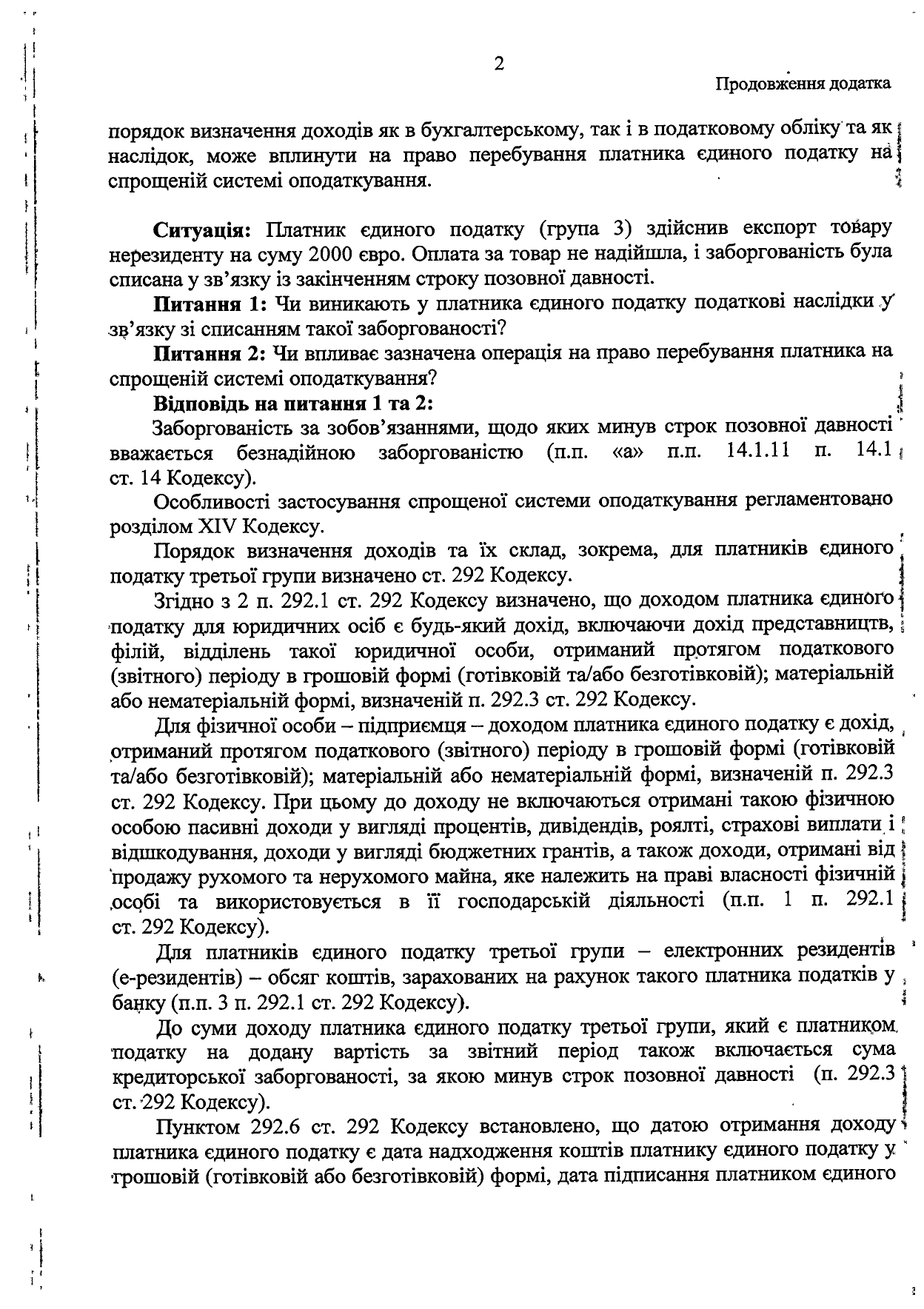 Питання 1. Чи виникають у платника єдиного податку податкові наслідки у зв’язку зі списанням такої заборгованості?