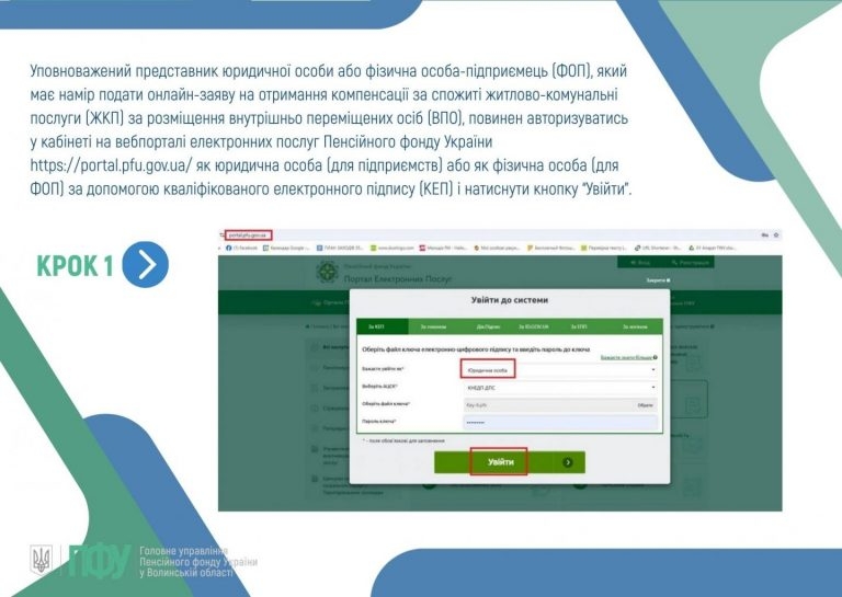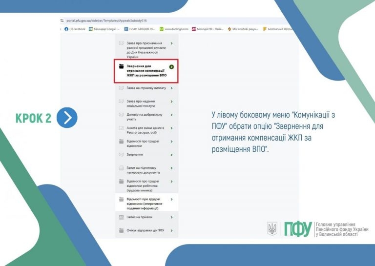 Подати заяву на отримання компенсації житлово-комунальних послуг за розміщення внутрішньо переміщених осіб можна онлайн через вебпорталелектронних послуг Пенсійного фонду України.