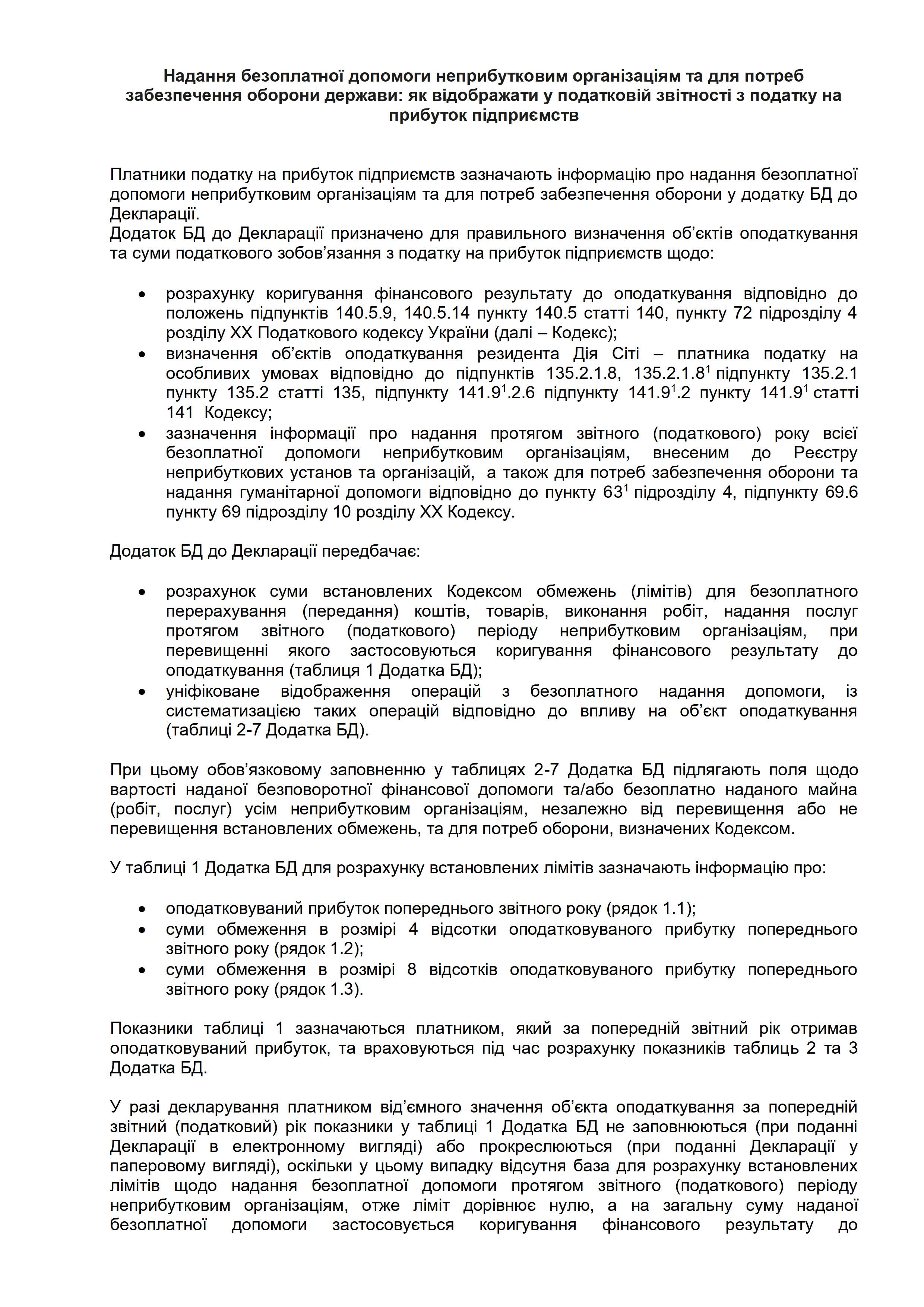 Усі операції з надання допомоги – як для оборони, так і для неприбуткових організацій – підлягають обов’язковому відображенню у спеціальному додатку до податкової декларації з податку на прибуток підприємств. При цьому важливо враховувати встановлені обмеження та коригування, які залежать від обсягів допомоги і фінансових показників попереднього року.