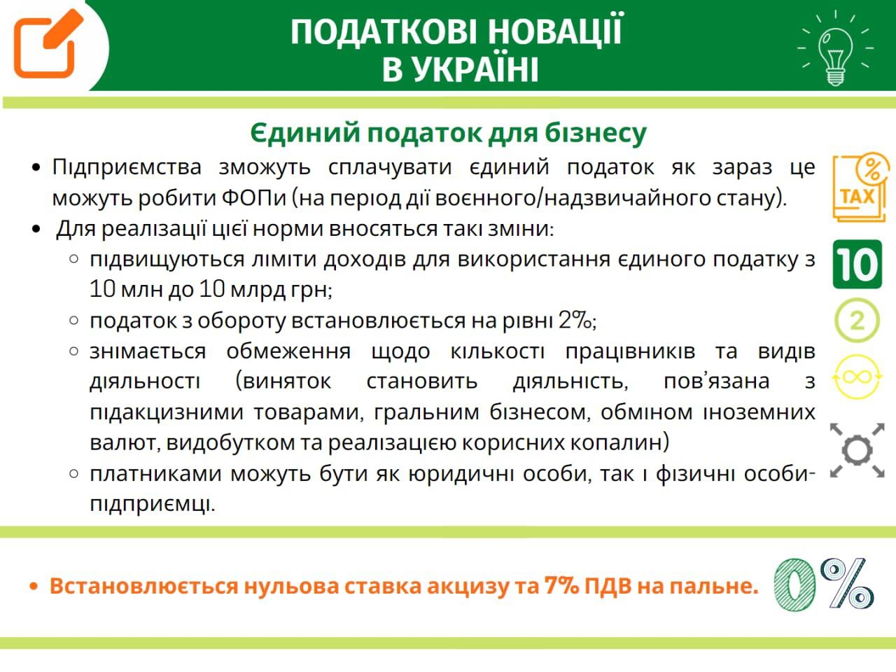 У своєму telegramД. Гетманцев навів основні податкові новації для бізнесу, які вже діють в Україні.