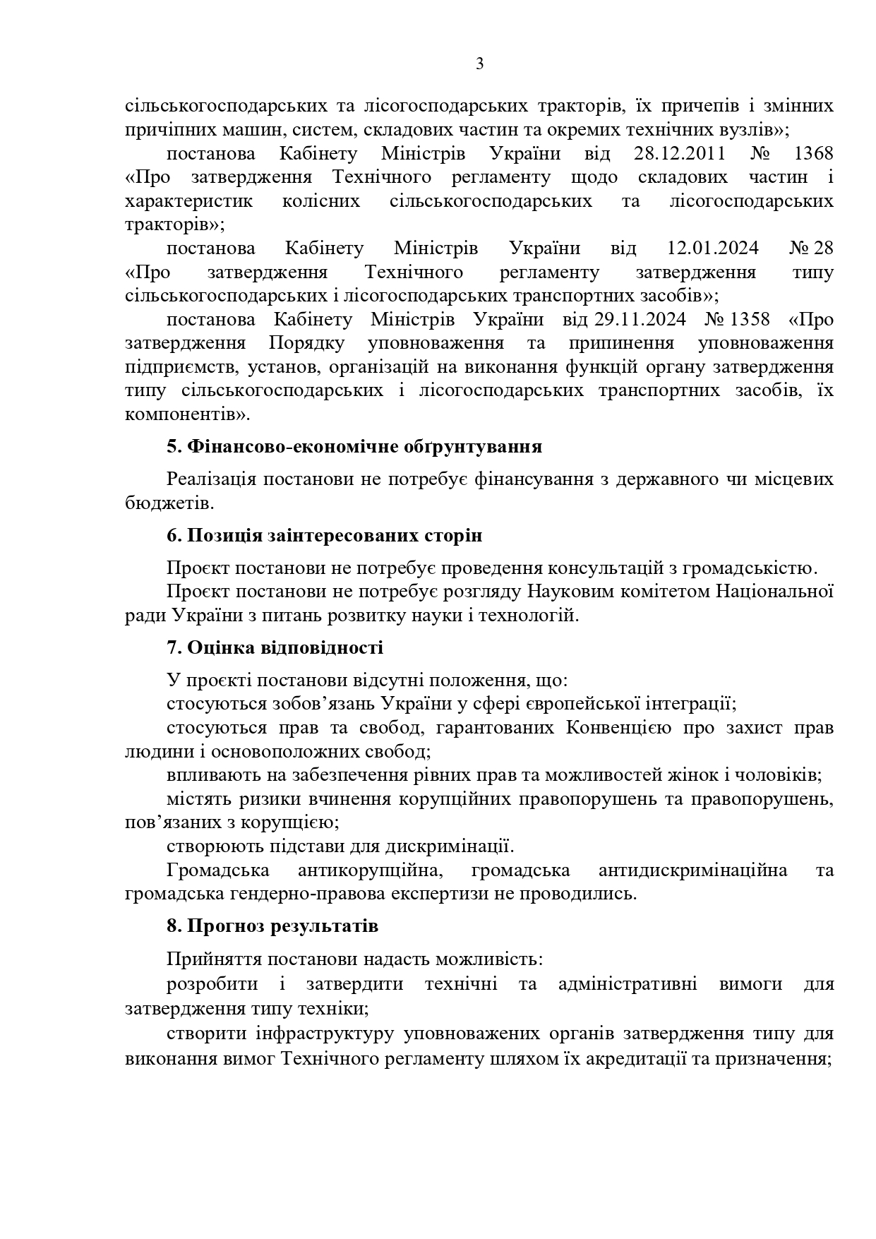 Після завершення строку дії зазначеного перехідного періоду постанови КМУ, якими затверджено Техрегламент № 1367 та Техрегламент № 1368, втрачатимуть чинність, а виробник техніки повинен буде застосовувати лише Техрегламент № 28.